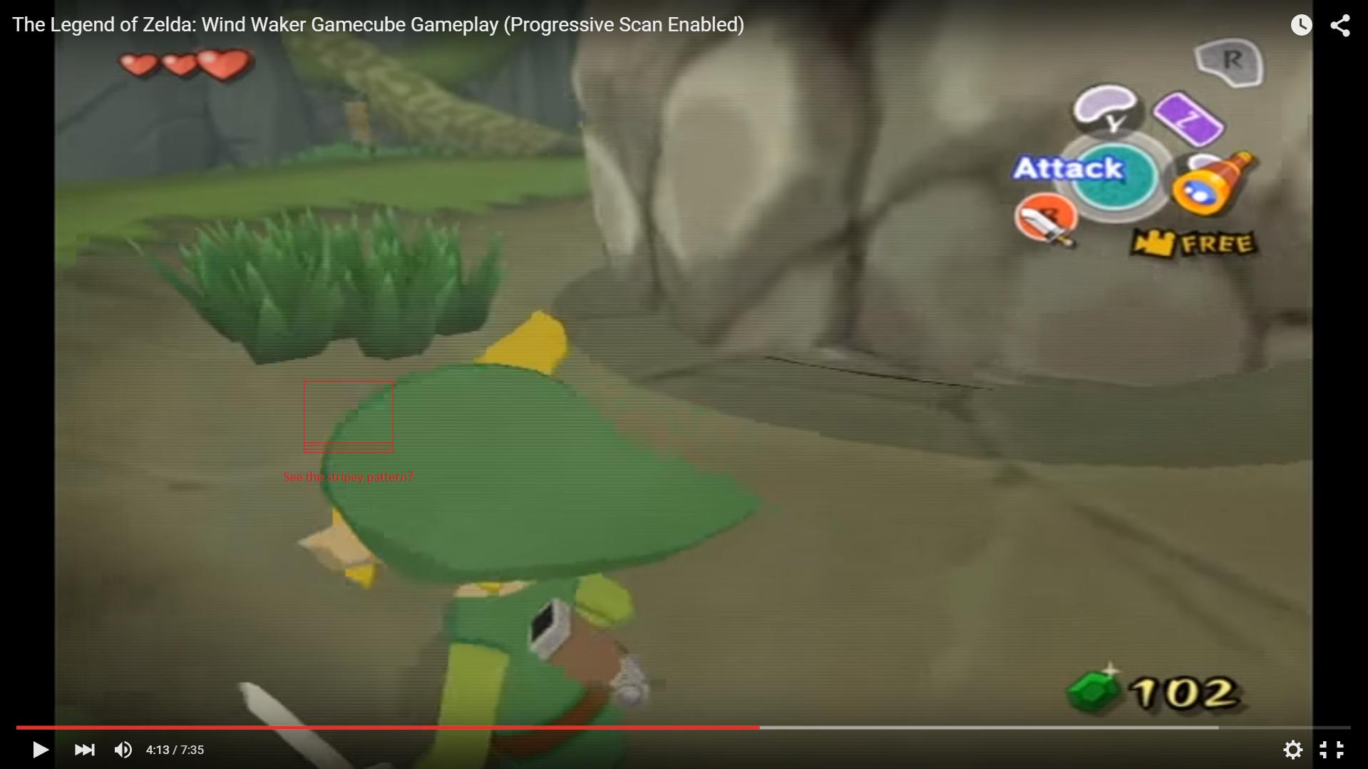 Any word on the scanline/dithering effect I described? Like I said, I'm fairly confident that it's something the GameCube just does, as if you look at the youtube link I posted of the direct capture footage from Wind Waker, you can see artifacts resembling scan lines running across the screen.