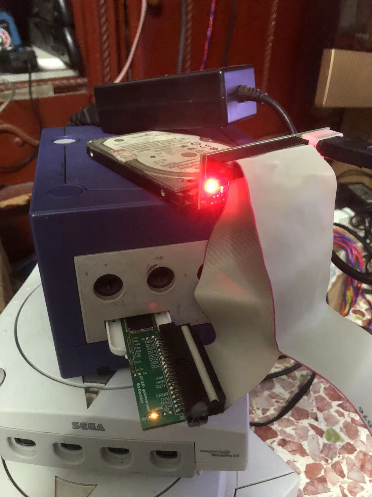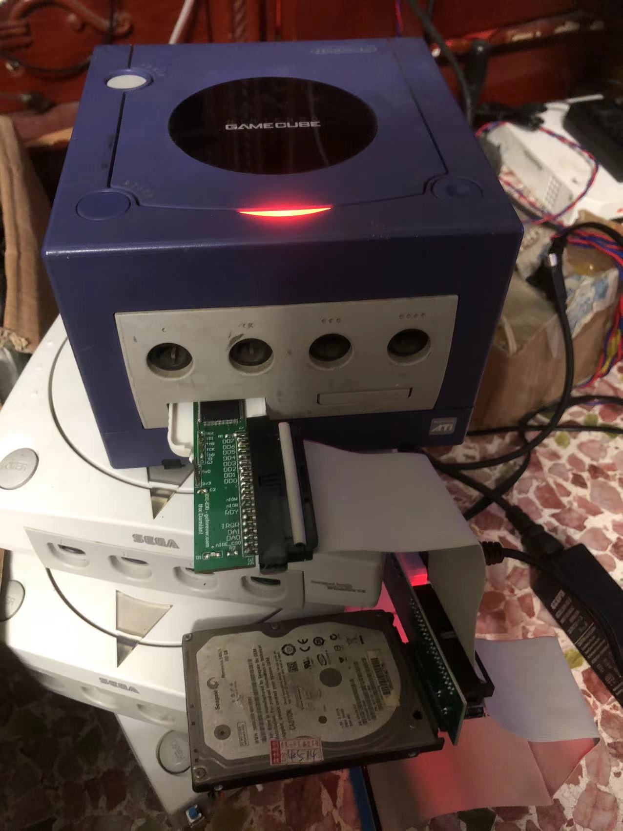 my connection as the setup flow picture (NGC-->IDE-EXI Board-->80pins IDE cable-->IDE to SATA board-->HDD)