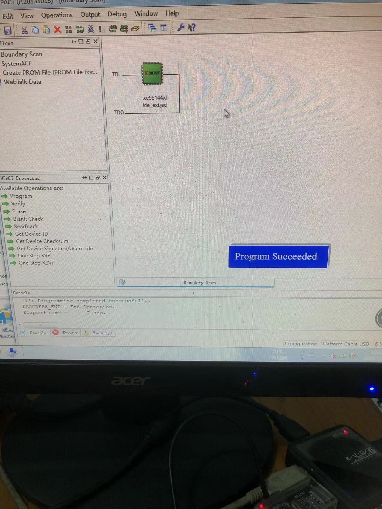 use Xilinx DLC9LP usb programmer for programmed IDE-EXI-V2 and the programming was succeeded