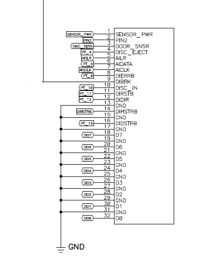 Testing of the pins on the Wii this is what I found: Pin22(DIRSTB) and Pin23(DISC_IN) Confirmed to output 3.3v (same as GC counterpart connections). Pin 32(SENSOR_PWR) and Pin 30(DOOR_SNSR) I have confirmed to output 3.3v constant from Wii Mainboard (I know we previously talked about leaving these disconnected, but I'm thinking now the sundriver will be looking for/need this voltage/signal?). Pin 31(formerly the unknown Pin2) is most definitely not a ground as I suspected. I got an output of 0v from this pin. I did not have anyone around to help me push the front panel buttons while I held my meter at the time but I believe now that this may be a reset signal when the front panel reset button is pressed. Pin 29(DISC_EJECT) also got 0v output, again I believe that when the front panel button is pressed it probably supplies a 3.3v signal to this pin.