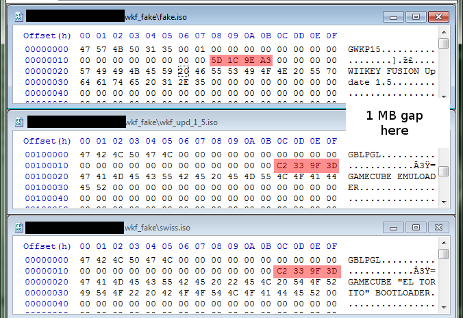 zenloc, an original wii disc header contains partition data, secret keys that encrypt it etc... the faked header just contains zeros (0x00) - its empty.