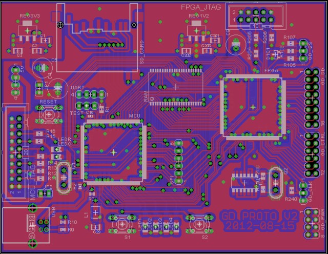 Now it's a proper prototype, with all these wires and blinking LEDs. A few things are still missing on the PCB but right now I need to get SD protocol working so I can fetch FPGA configuration image and test it.