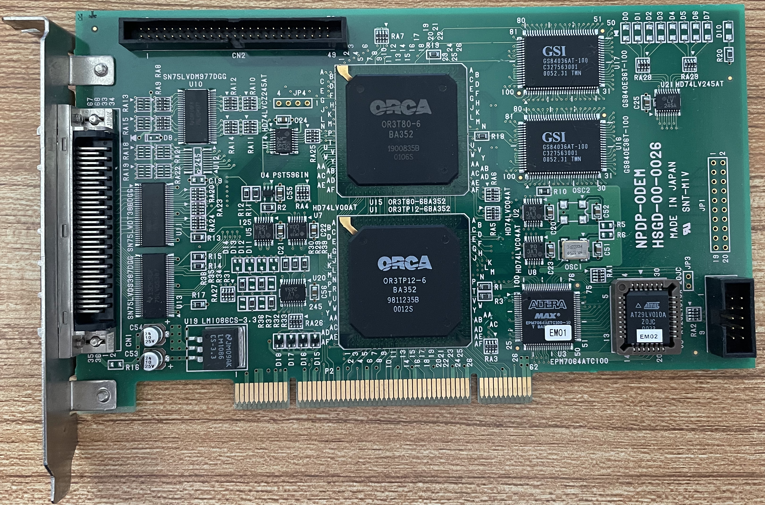 This is very frustrating! I'd love to find someone with some working hardware to compare notes with. My gut right now thinks it is the ODEM card, but it is hard to find any details about it. For example, there's nine LEDs on the back of my card that all light up steady when the card is running, and I don't know what their purpose is. They are labeled D0-D7, and D10. When I looked up the reported device id I got from Device Manager, it said it belonged to an FPGA development board, and when I looked up the chips on the card, there are two big FPGA chips. Which makes sense, from what little I know about electrical engineering, you aren't going to make custom ASICs for a product that will only be sold to a very small number of developers, and there's probably not an off the shelf solution for what this does.