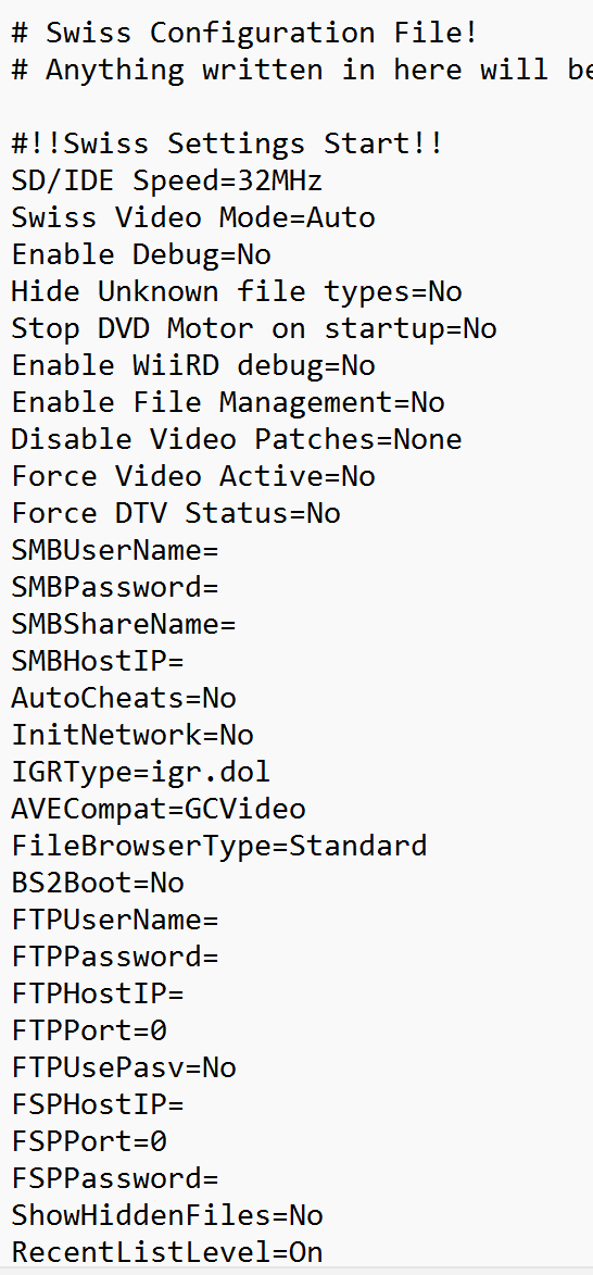 With that not working, I downloaded the latest version of Swiss this morning (V1400, I believe). I extracted the files, took the uncompressed dol file from that version (which was there....I still don't know why it wasn't sitting in the dol folder in my V1336), copied that over to the root of my SD card, renamed it igr.dol. Still same result....when I try to in-game reset to Swiss, it instead goes to the GameCube menu.