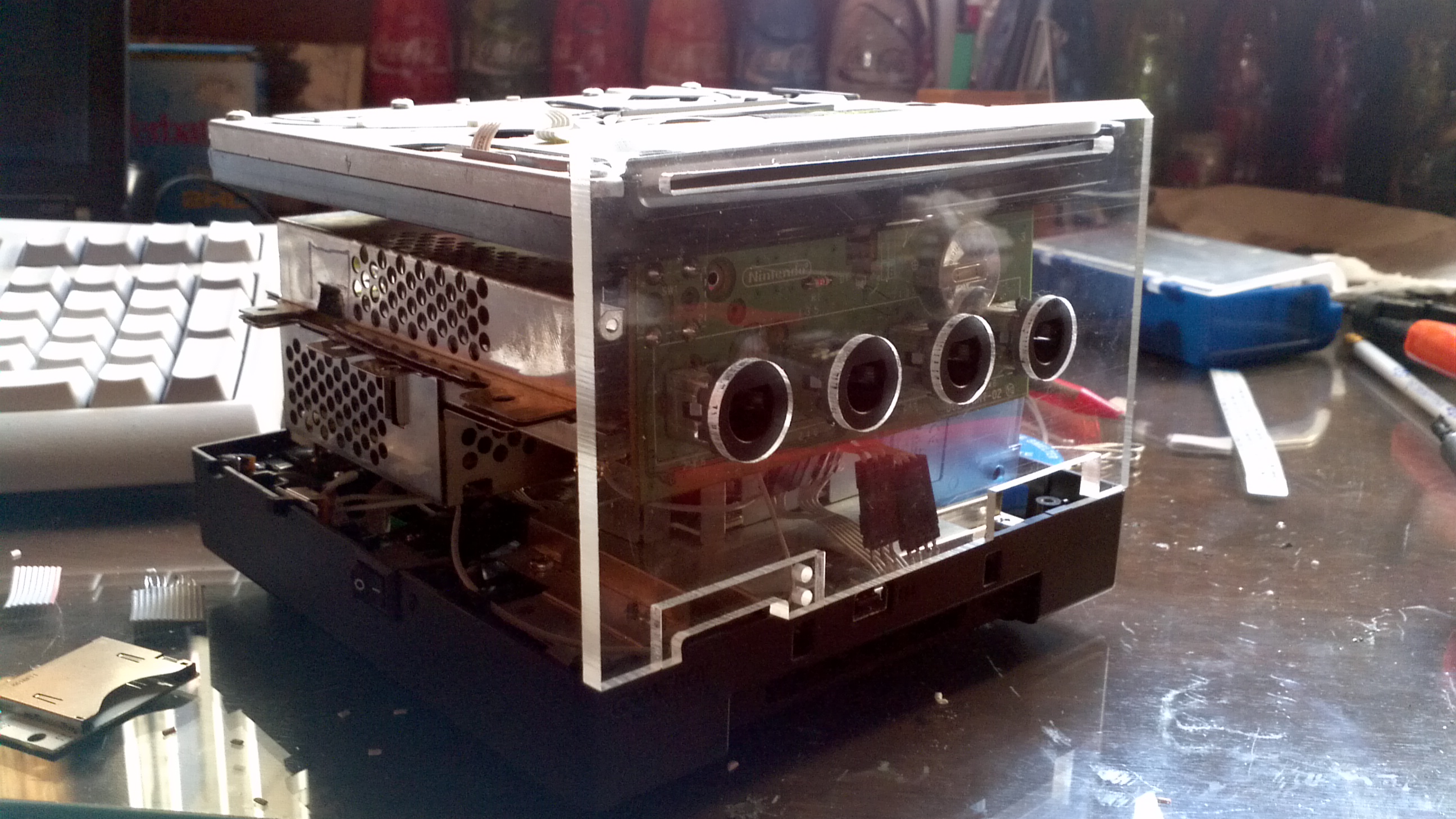 All inside a GB player base and a custom acrylic case barely larger than a standard cube.